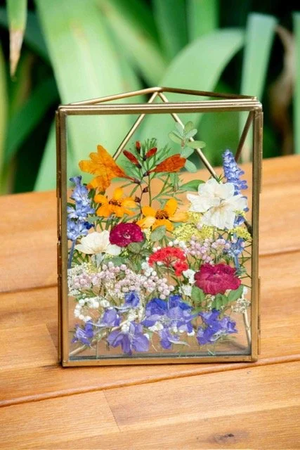 Flower Frames Are you ready to embark on a colorful journey with our delightful service? Let your imagination run wild with glass frames adorned with our exquisite pressed flower art. Experience the magic!